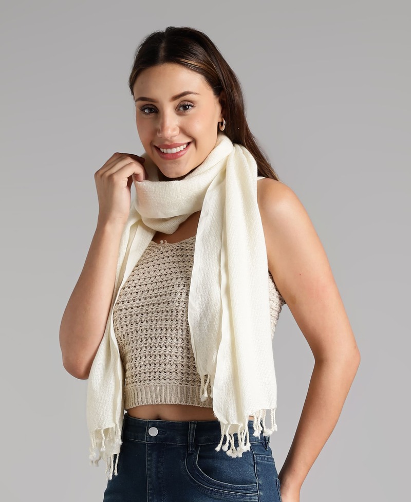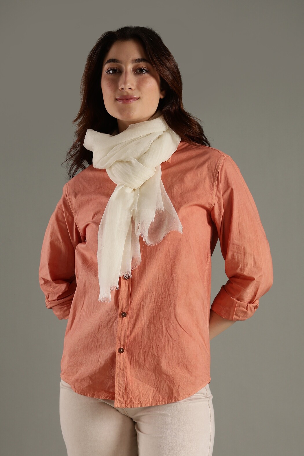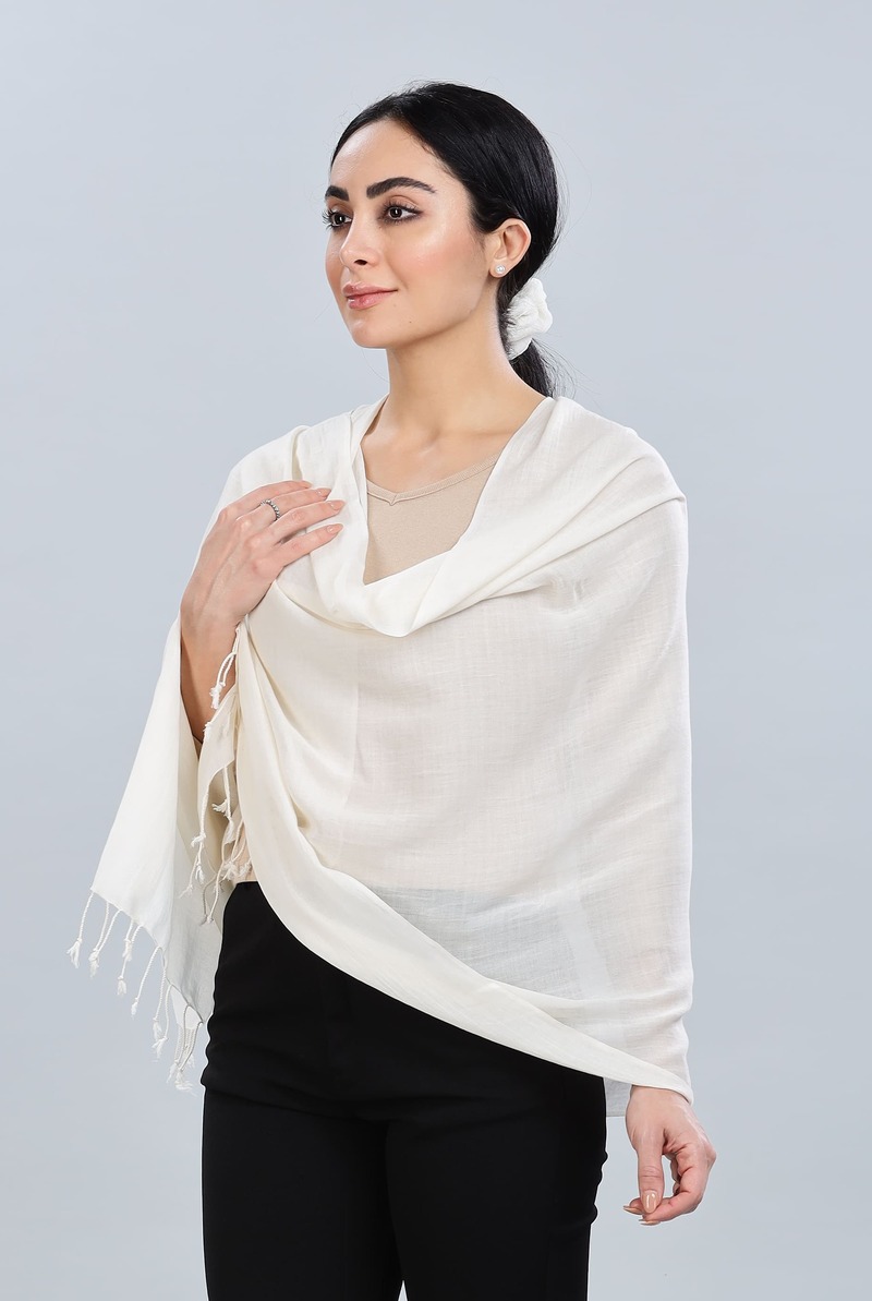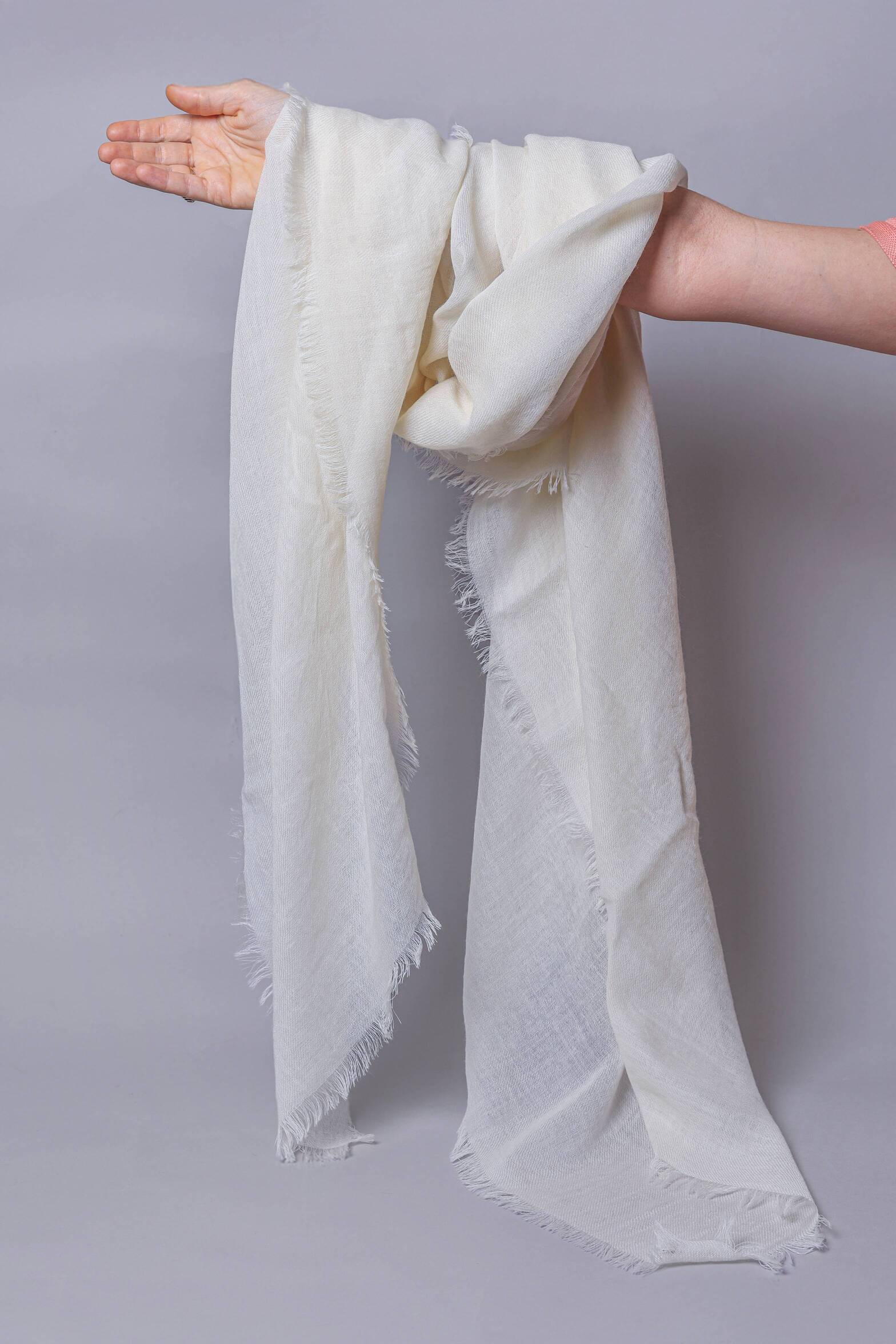 This cotton voile scarf (Ref-Ritu) is lightweight, ready to dye, and soft in texture. It is made of 100% cotton. It can be an accessory used during spring and summer. The soft cotton voile fabric ends with fringes, and it will match most of your outfits. You can wear it as it is in white or dye it with any natural colors.