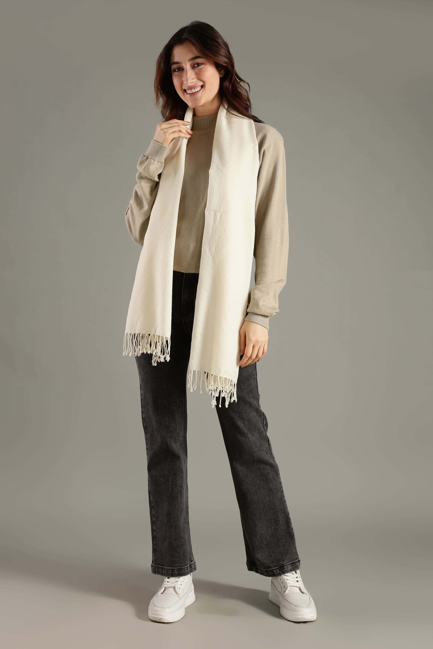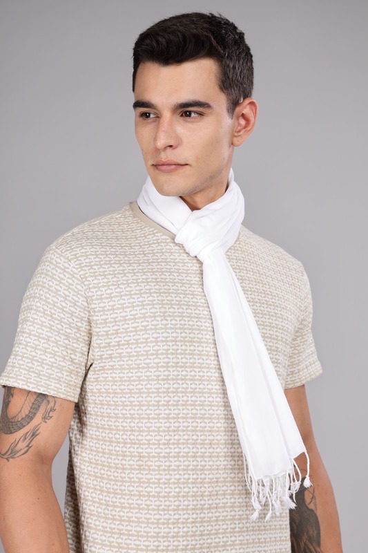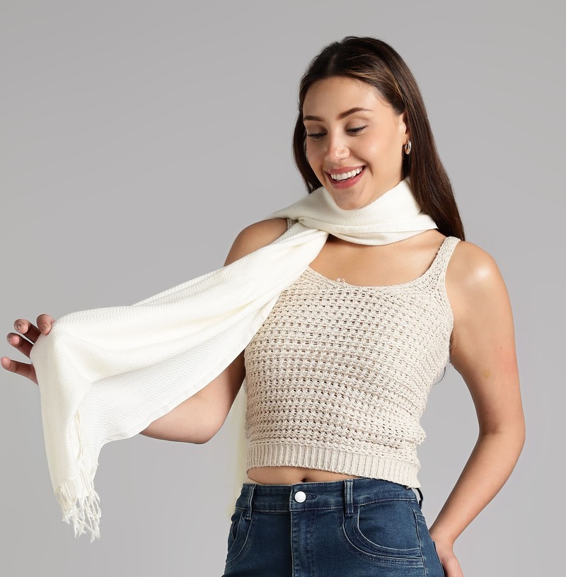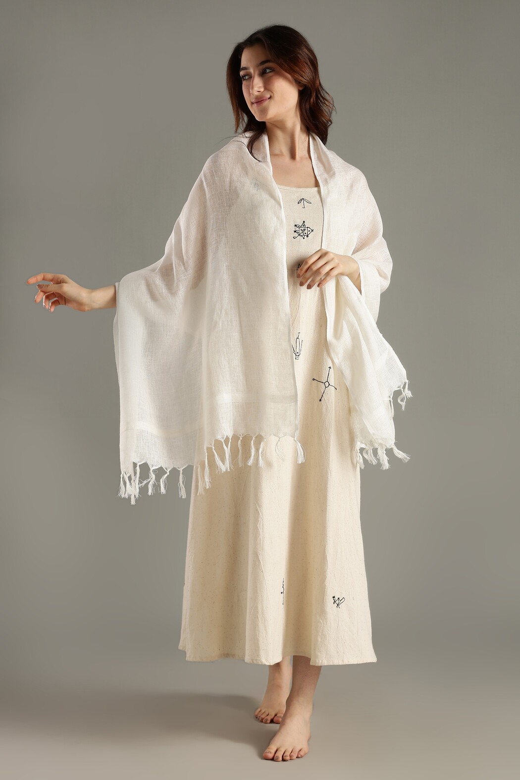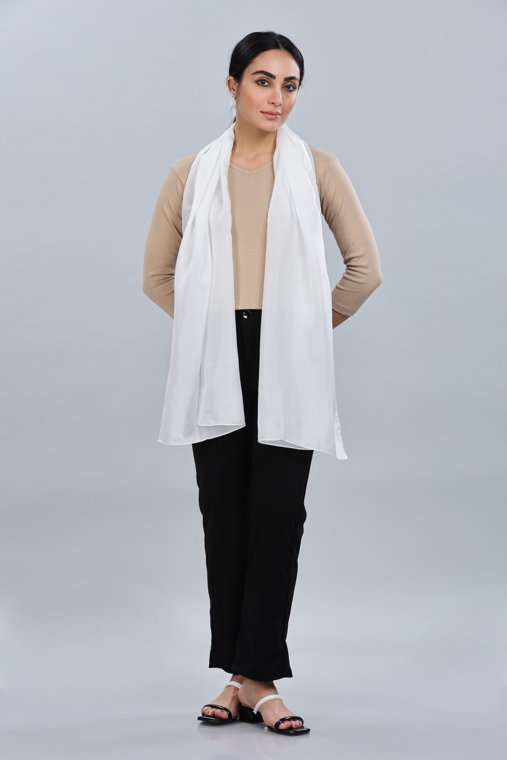 This cotton voile scarf (Ref-Ritu) is lightweight, ready to dye, and soft in texture. It is made of 100% cotton. It can be an accessory used during spring and summer. The soft cotton voile fabric ends with fringes, and it will match most of your outfits. You can wear it as it is in white or dye it with any natural colors.