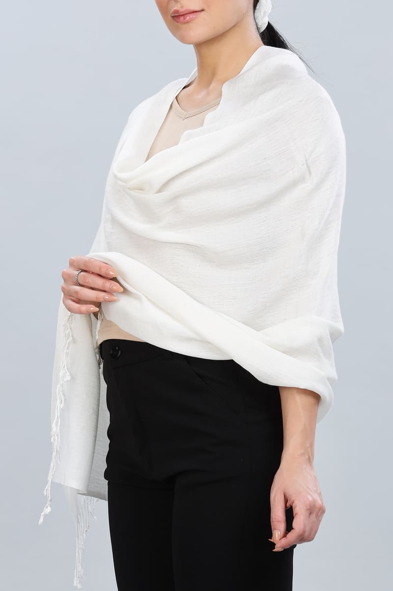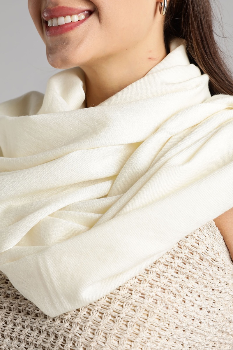 This product (Ref. Smita) is a combination of 70% merino wool and 30% silk. It is very soft, comfortable, and lightweight but remains a very warm option in winters due to the combination of silk and wool. You can wear this piece of merino wool silk scarf during autumn, winter, spring, and cool summers.