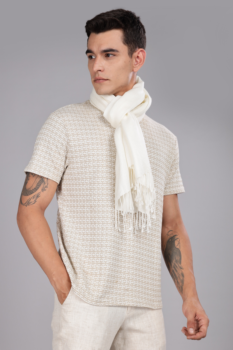 This scarf is made from 100% merino wool. The scarf has an ultra-soft texture. You will feel comfort and warmth on cold days. The wool dobby fabric (Ref. Neha) we are using is more breathable and suits your skin perfectly. It regulates your temperature without making you feel too cold or too hot.