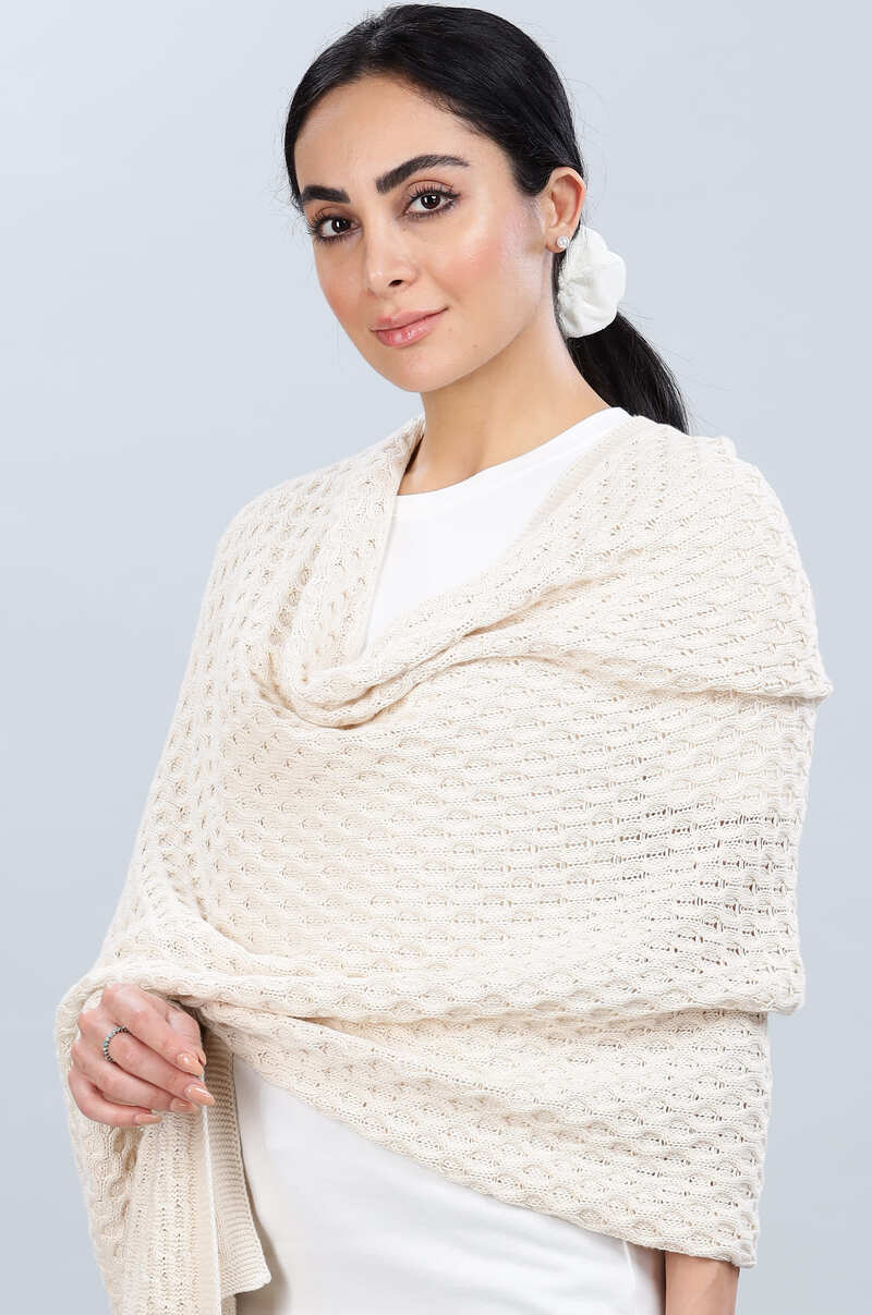 This wool scarf (Adha) is produced from 100% pure merino wool. It has features like being soft, cozy, warm, and comfortable. It has a specific light and an open weave structure, making it a very easy piece to dye. The soft texture of the scarf helps to save your skin from the cooler weather.