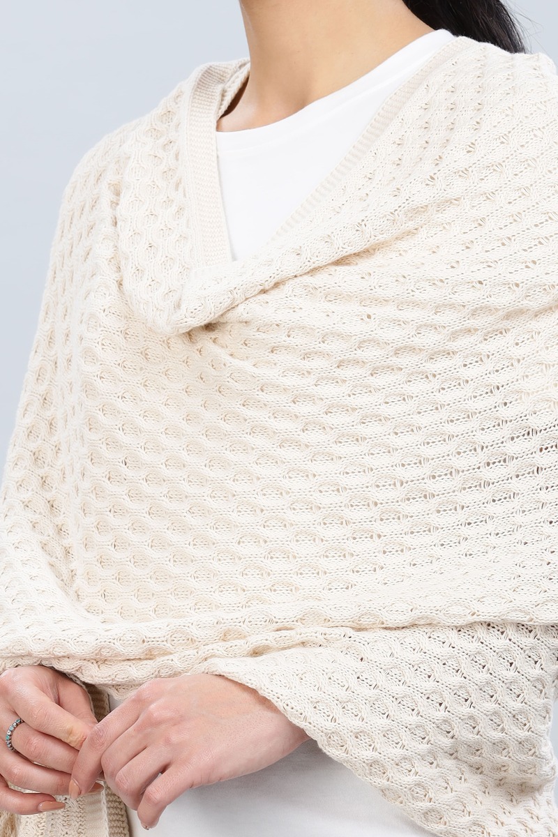 Enjoy the comfort and softness of the cotton knitted scarf (Ref. NINU). It is ready to dye, or it can be worn as it is in the natural color of the cotton. This pure cotton scarf is ethically produced under GOTS certification and completely free of any chemicals.