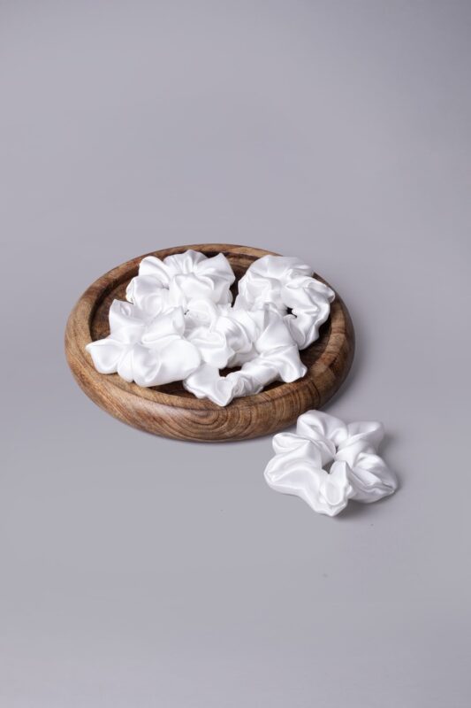 This Scrunchie satin silk holds your hair gently and saves it from damage. It has a very smooth texture and is flexible, soft, and shiny. This fabric is made of 100% mulberry silk. You can wear it as it is in white or customize it. The fabric is talking beautifully in all natural colors.