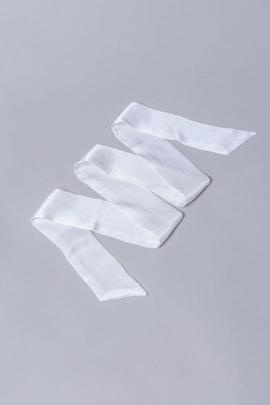 This silk ribbon is made from Satin 60, a soft and smooth fabric that feels gentle on your hair. It has a natural sheen that gives it a beautiful look. You can use it as it is, or you can dye it with any natural colors because it is a ready-to-dye product. The edges are neatly stitched with silk thread, and it is so lightweight you will feel comfortable all day.